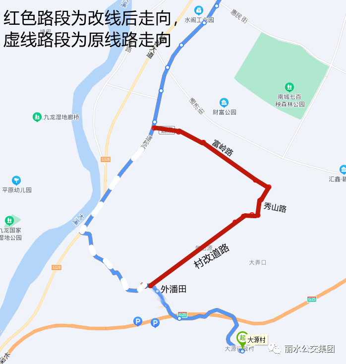 为解决该路段百姓出行需求,从12月22日起,对上述线路进行临时调整,线路走向将调整未起点(水阁小学)途经遂松路-富岭路-秀山路-村改道路-外潘田(旺能公司)至终点站(大源村和下樟村),取消上沙溪路口、上沙溪、沙溪公交枢纽站、沙溪村四个停靠站点,运营首末班时间不变。