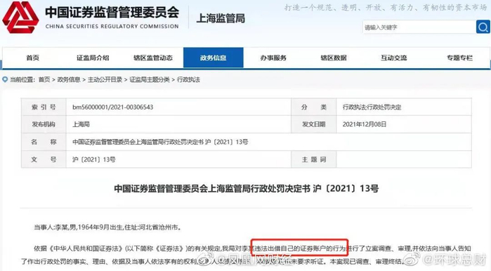 证券时报注意到,这是新证券法实施以来,首例公开对出借自己股票账户行为进行的行政处罚。此前也有按照新证券法对股票账户出借人处罚的案例,但是是司法判决。此前更多的是,只对股票账户借入方进行处罚,而并不处罚出借人。