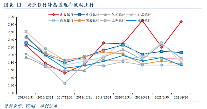 兴业银行近年来净息差略有波动,但整体保持上行。2017至2020年来看,兴业银行净息差连续三年上行,2020年较2017年提升0.63个百分点。公司净息差在股份行转债中处于中游水平,高于浦发转债正股。