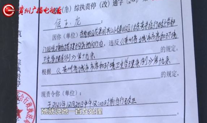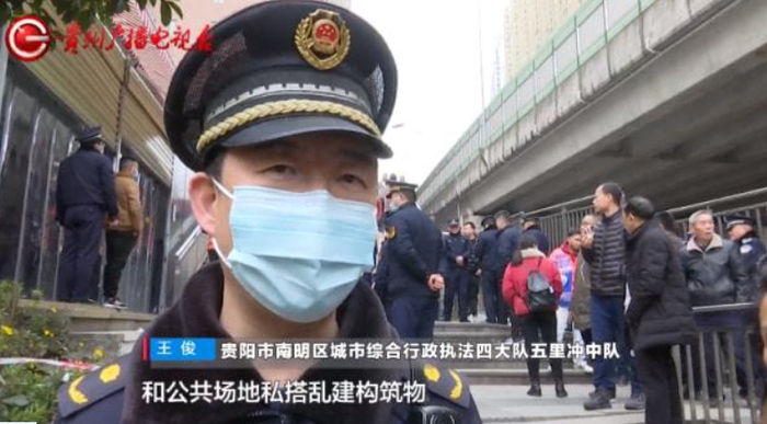 贵阳市南明区城市综合行政执法四大队五里冲中队 王俊:根据《贵州省城市市容和环境卫生管理条例》第十九条,单位和个人不能在道路两侧和公共场地私搭乱建、构筑物,建筑物或者其他设施。