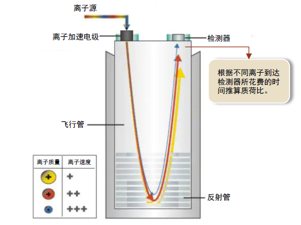 ►质量分析器:分离。在电场或磁场的作用下,对不同质荷比的带电离子按照运动行为不同进行分离。主要包括四极杆(Q)、飞行时间(TOF)、离子阱、离子回旋共振(ICR)、磁场等。此外,可将多个质量分析器进行联用,形成串联质谱仪(MS/MS),以满足更高的精度和灵敏度要求,或更宽泛的检测场景,常见的串联方式如三重四极杆(QQQ)、四极杆飞行时间(Q-TOF)等。