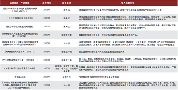 图表29:部分科学仪器重点法律法规与产业政策梳理