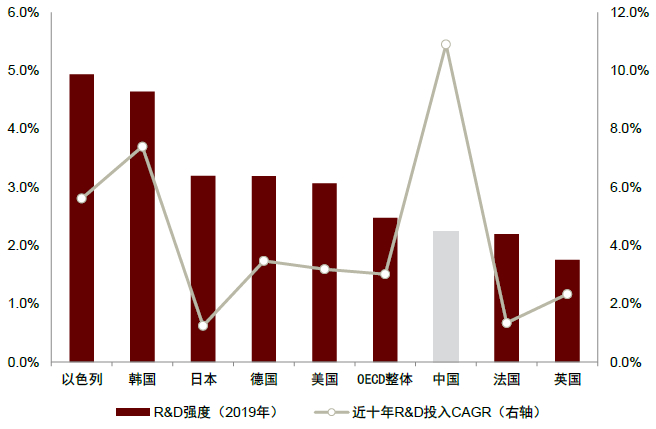 把握科技创新与高质量发展机遇,分析仪器有望打开长期增长。根据OECD,我国2019年研发强度为2.2%(2020年提升至2.4%),较美国、日本、德国等科技强国仍存在较大的提升空间。根据中金公司《科技创新与产业链发展研究报告》,从长期经济发展目标看,未来十五年我国适合的R&D强度仍需较目前提高1个百分点左右。此外,在高质量发展要求下,我国检验检测市场在过去也保持10%以上的长期增长,我们预计未来也有望保持10%以上的长期复合增速。我们认为中国仪器企业面对的仍是一个蓬勃发展、持续扩容的广阔市场,长期发展机会良多。