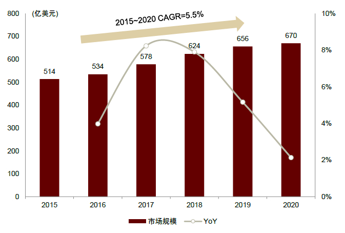 2020年全球分析仪器市场规模约670亿美元,中国约占15%。根据前瞻产业研究院援引的SDI数据,2015年全球实验分析仪器市场规模为514亿美元,2020年约为670亿美元,2015-2020年CAGR达5.5%。其中,中国市场成长快速,市场规模全球占比从2015年的10%增加至2019年的15%,我们保守假设2020年占比仍为15%,则估计2020年中国分析仪器市场规模约为656亿元,2015-2020年CAGR达到14.4%,增速远快于全球其他市场。