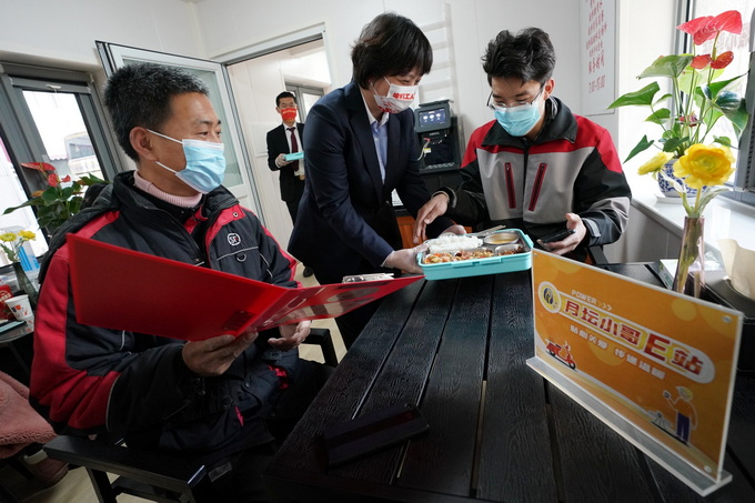 将台乡上东菜篮子市场附近有一处“将小爱”暖心驿站,这里不仅是小哥们的休息点,还是一个志愿服务站。越来越多的志愿者聚集到这里,市场商户和小哥的家属组成为老志愿服务队和巾帼志愿服务队,为老人跑腿儿、送菜、做家务、陪聊天等。每逢佳节,大家都聚在驿站,其乐融融。