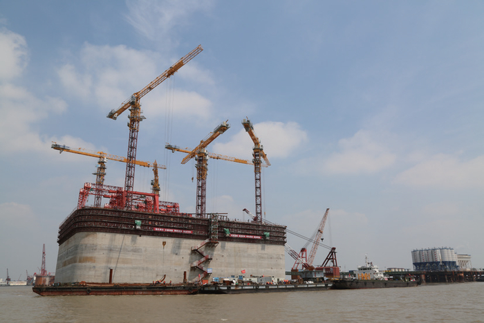 (1)沉井制造、浮运技术。一般大型沉井在桥位附近制造,以减少远距离浮运的风险。沉井井壁建议采用预制拼装,由大型浮吊分块吊装后现浇湿接缝,目前,需研究船坞的功能及建造技术、井壁预制及连接技术。