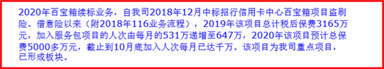 开甲财经获得的一份介绍材料显示,2019年,太平财险-招行信用卡百宝箱加入用户647万,到2020年10月,用户达到了1000万。按人均每月10元计算,招行信用卡仅凭借该服务包年收入轻松超过10亿元。