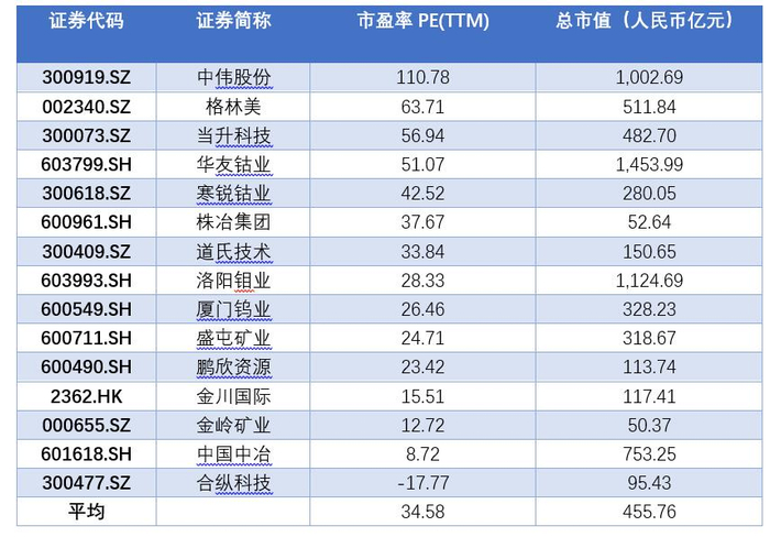 但从估值角度看,目前金川国际低于行业平均水平。Wind数据显示,截至12月15日收盘,金川国际的市盈率(TTM)仅为15.51倍,远低于华友钴业的51倍、寒锐钴业的43倍、洛阳钼业的28倍,也低于钴矿行业平均(35倍)的一半。