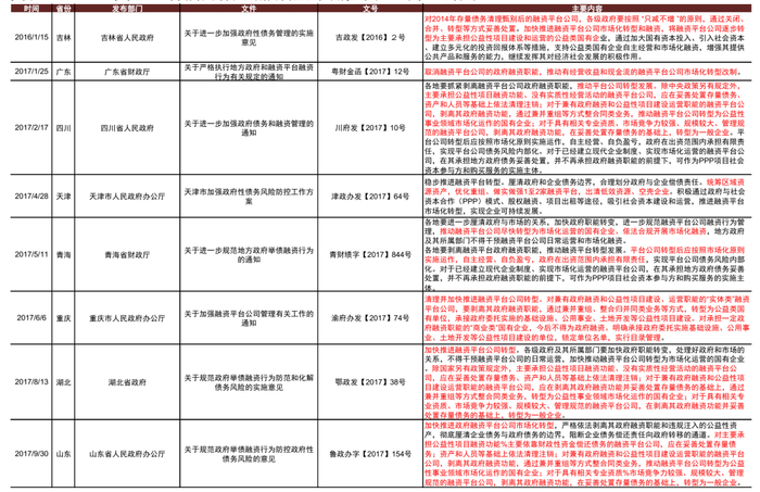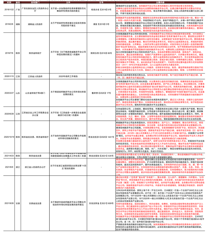 地方层面上,近年来多个省份根据中央层面推动城投市场化转型的精神,除重申相关原则外也提出了一些具体的操作方案: