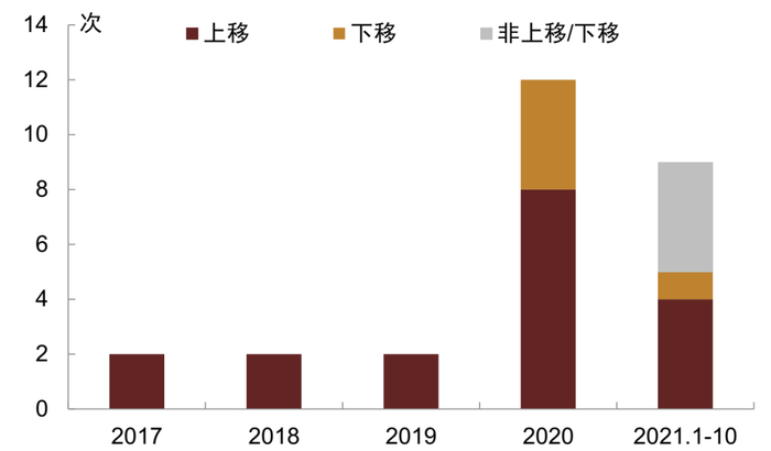 图表6:2017年来行政级别变更类评级调整分时统计