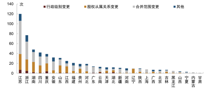 图表7:2017年来行政级别变更类评级调整分省统计