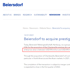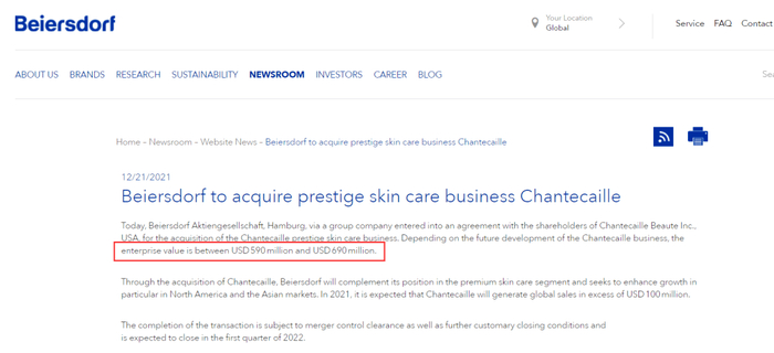 近日,德国日化巨头在其官网上宣布,将收购奢侈美妆品牌香缇卡,对该公司的估值在5.9亿美元到6.9亿美元之间(约合人民币37.6亿元-44亿元),其交易预计将在2022年第一季度完成。
