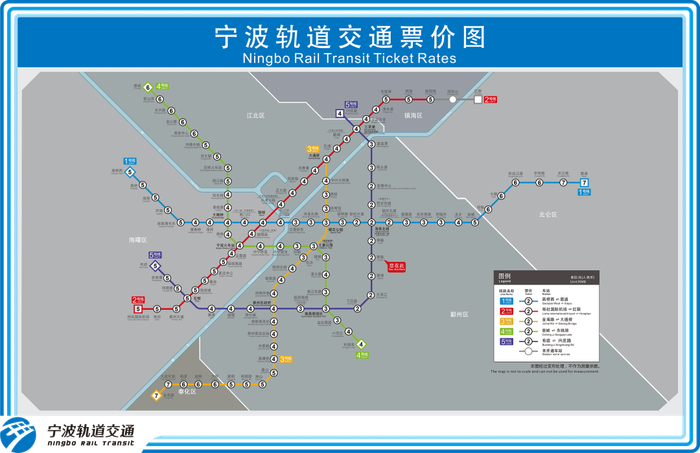 根据宁波市轨道交通线网票价方案,5号线一期采用里程分段计价票制,实行“递远递减”票价原则,与1号线、2号线、3号线、4号线换乘不影响票价计算。