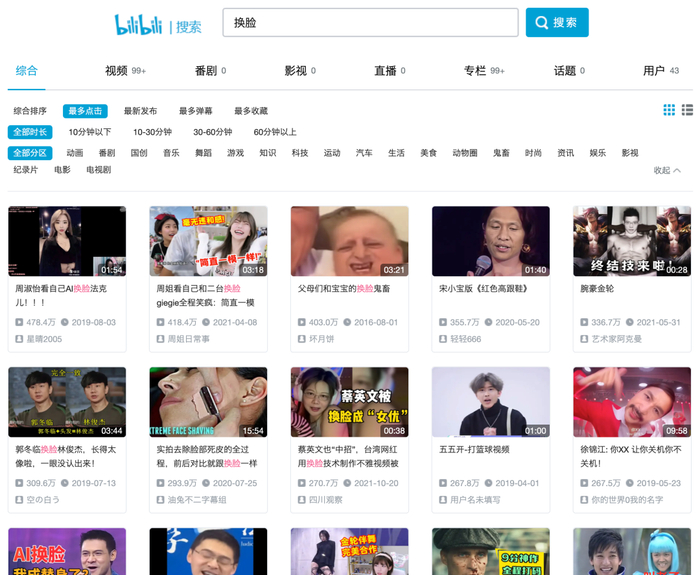 不少B站或短视频用户肯定在平台上看到过这样的现象,每当有一个视频爆火,就会有网友将自己喜欢的明星的脸通过AI技术“移花接木”到原视频的人物身上;一些网友还爱将一些喜剧明星的脸通过AI技术换到《甄嬛传》等宫廷剧的角色身上;还有人将自己的脸换到动漫人物身上…