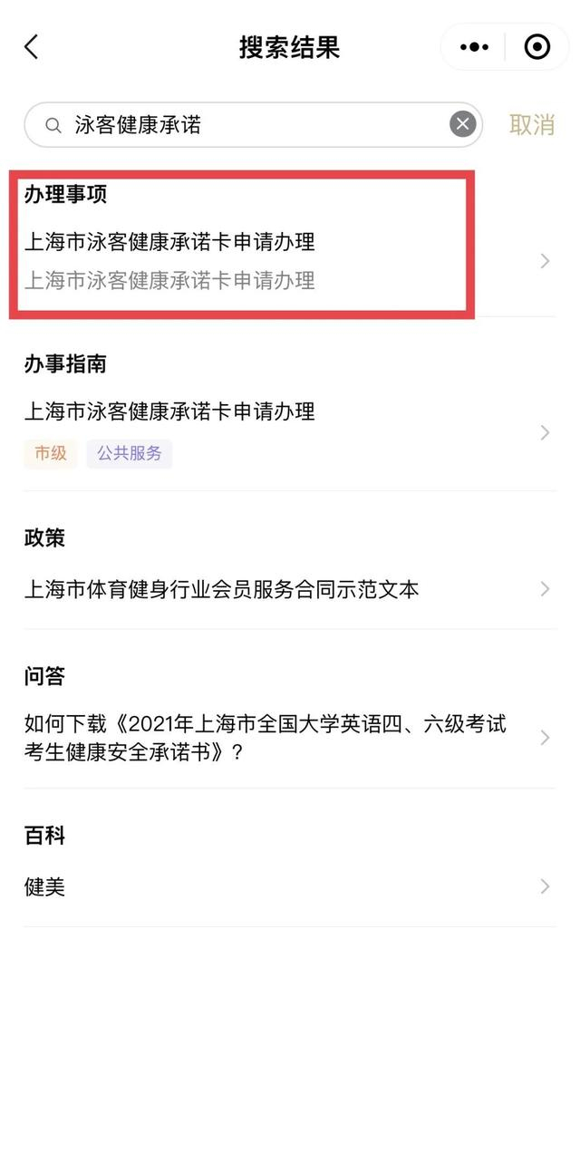线上办理上海市游泳场所健康承诺卡
