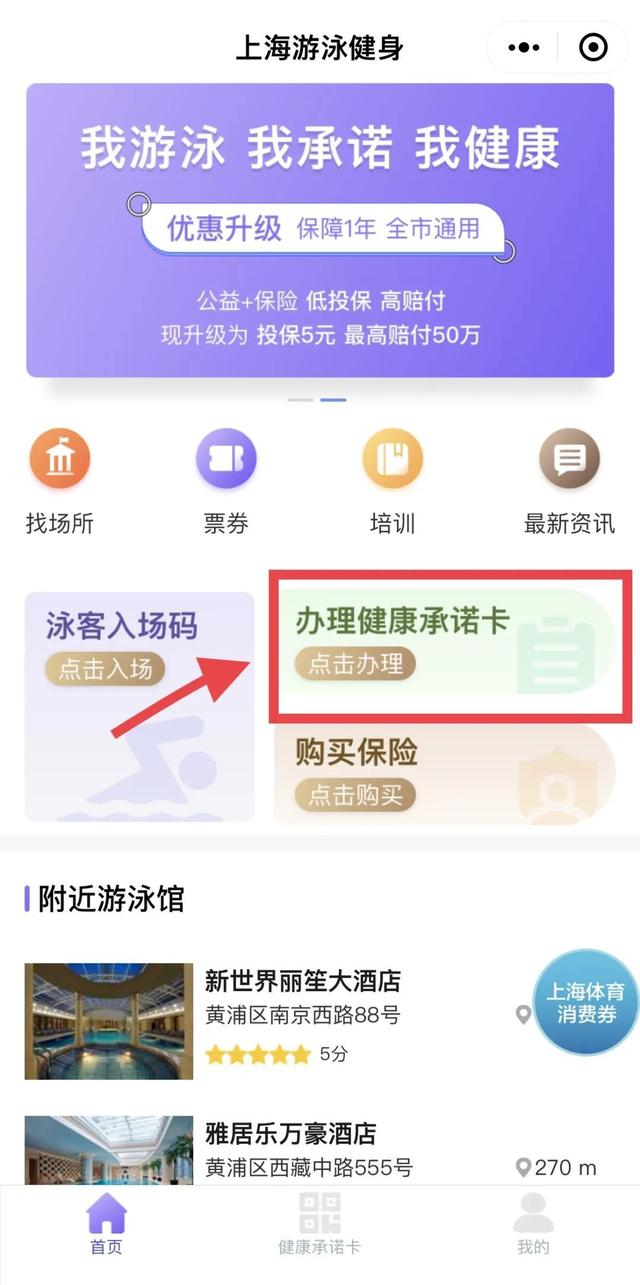 目前,市民可以通过“上海体育”政务微信、“随申办市民云”APP、“上海市游泳健身”微信公众号等渠道进入“上海游泳健身”微信小程序在线办理上海市游泳场所健康承诺卡。