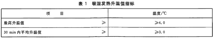 FZ/T 73036-2010《吸湿发热针织内衣》中对吸湿发热满足标准升温值指标作出了明确的规定,样品特定的试验箱内进行保温试验, 最终最高升温值不小于 4.0℃,30min 内平均升温值不小于 3.0℃才可被称为具有吸湿发热性能。