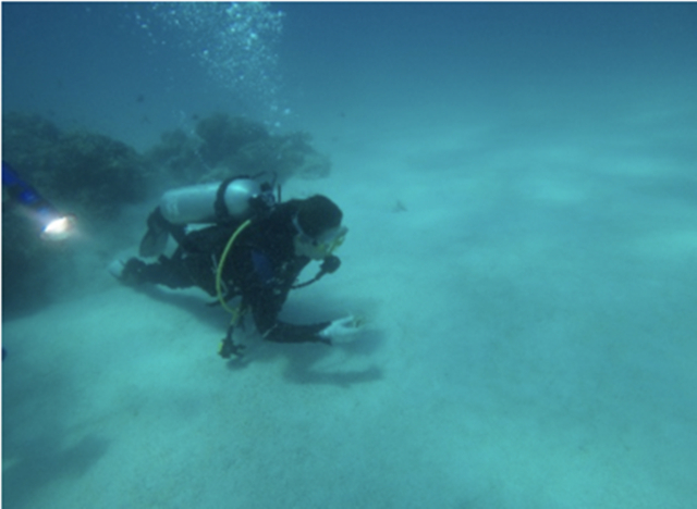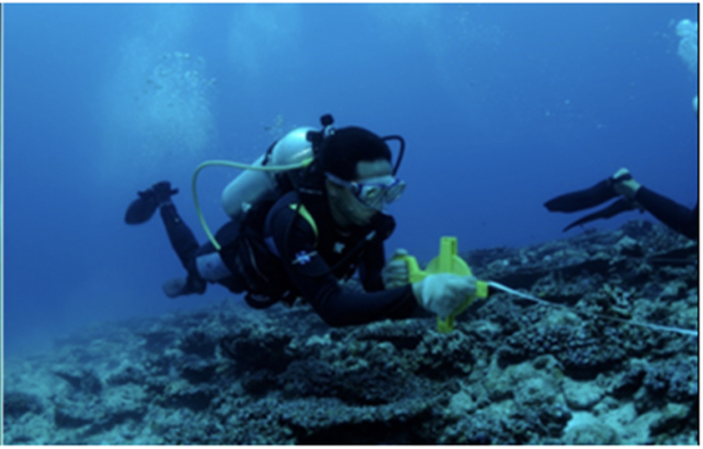 (科学家黄晖与团队在海底进行珊瑚科研活动)