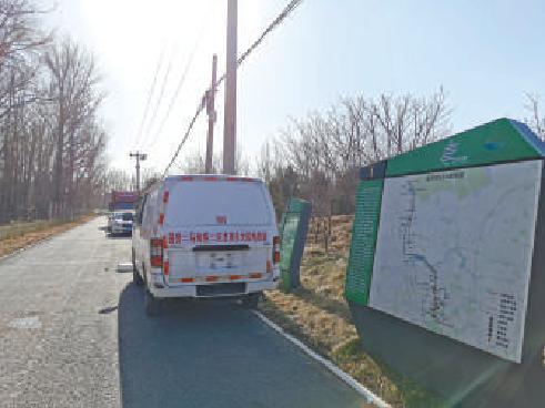 出了东小口城市休闲公园,记者骑车直插进贺新公园,目标太平郊野公园。这一段的绿道标识还算好找,指向也相对明确。可进入单家村东侧的林地,问题便出现了:眼前是一个丁字路口,路口的绿道标识显示由此左转通向霍营公园,右转则是太平郊野公园。根据官方信息显示,两者都位于绿道沿线,到底该往哪边走呢?