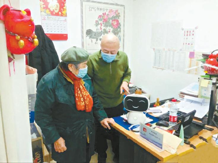 这款机器人个头不大,可以摆放在桌子上,能实现人机对话。当老人对机器人说出自己的需求后,机器人通过语音识别,在养老语音知识库中进行匹配,再接通后台人员,根据老人的需求采取相应的帮助措施。机器人里内置了100多项养老服务项目,20万条养老语音知识库,急救、护理、代购、用车、维修、缴费等老年人日常生活中的基本需求都可以通过直接与后台专业服务人员联系得到满足。这款机器人还可以播放新闻、音乐、相声等,给老人解闷儿。宋京林在协调给社区独居老人安装机器人时感叹:“如今的设备越来越智能,给老年人的生活带来不少帮助。”