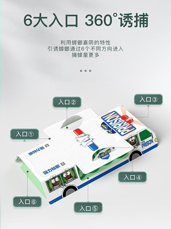 超威捕蟑屋外形像一个房子,里面放了蟑螂爱吃的饵剂,蟑螂闻到饵剂的味道,就会自己爬进捕蟑屋。捕蟑屋的外部设有6个入口,可以全方位引诱蟑螂;内部使用了日本进口的粘胶剂,粘性加强,整体形成了一个只能进不能出的闭环,蟑螂一旦进入就无法逃脱,只能在捕蟑屋里慢慢等死。