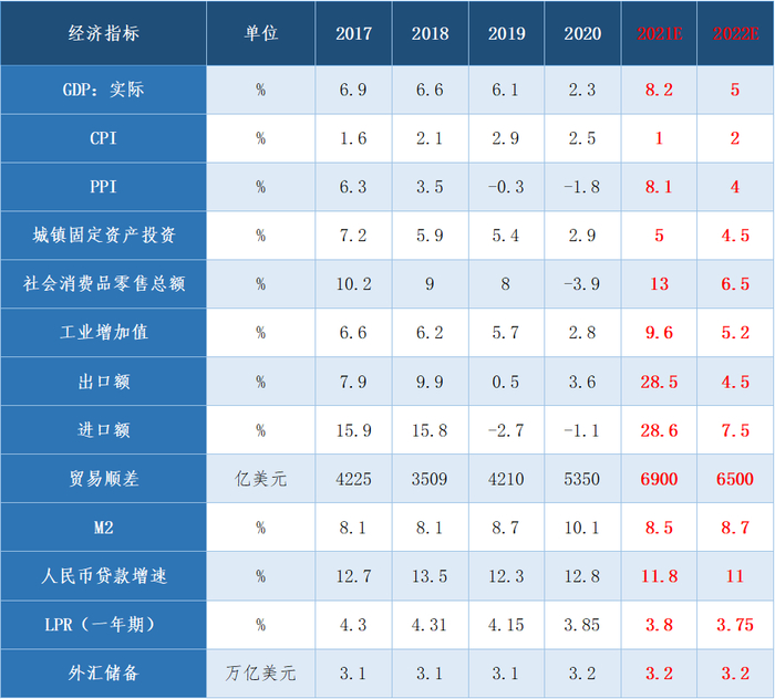 2022年中国宏观经济金融指标预测