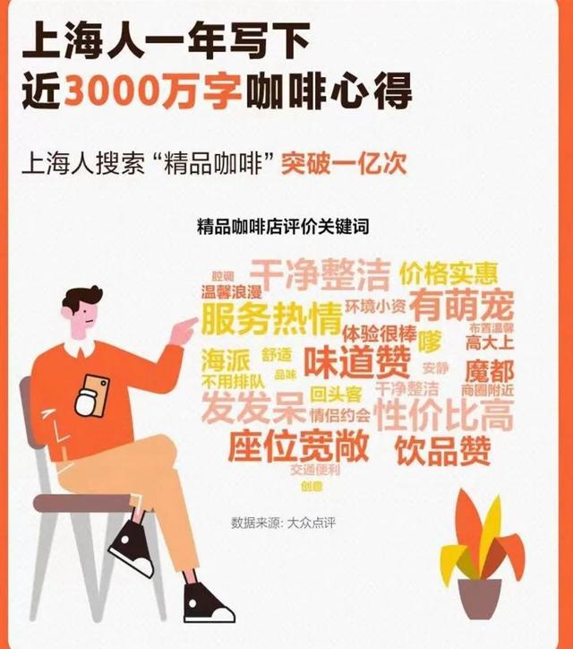 上海人到底有多爱精品咖啡呢?据报告,过去一年,上海人搜索精品咖啡等相关关键词达上亿次,同比增幅34.4%。他们在大众点评发布的精品咖啡店评价达2991万字。其中,最“钟爱咖啡”的用户一年内写了214条评价。