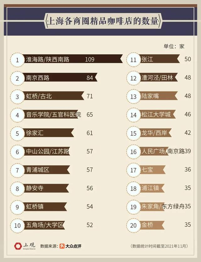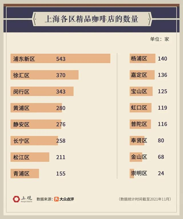 闵行全市第三,七宝、浦江商圈咖啡馆数量仅次人民广场