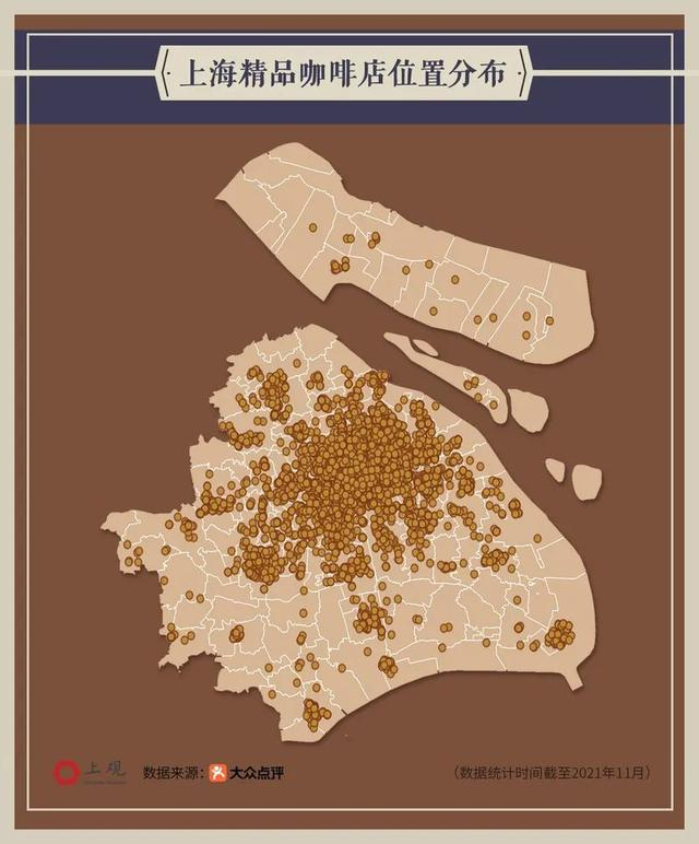 而从密度上来看,黄浦区依旧是精品咖啡店的聚集地。