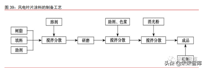 水性涂料体系是所有涂料体系的发展方向,现阶段水性涂料无法完全替代溶剂型涂 料。随着我国对于环保问题的日益重视,制定较为严格的 VOC(气相有机)管控措施及 法律法规。2015 年国家对涂料征收 4%的涂料消费税,但是对于施工状态下 VOC 含量≤ 420g/L 的涂料可以免征消费税。水性风电叶片涂料以水为溶剂,VOC 低。