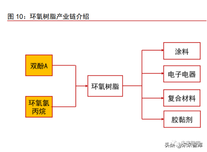 核心基体:环氧树脂体系是风电叶片生产的核心材料之一 环氧树脂是风电叶片生产过程中最为核心的原材料之一。环氧树脂是指分子中含有 两个以上环氧基团的一类聚合物的总称。它是环氧氯丙烷与双酚 A 或多元醇的缩聚产物。