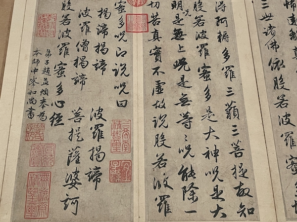 在这一单元,有辽宁博物馆藏赵孟頫经典墨书《般若波罗蜜多心经》册,有南京博物院藏黄公望墨笔《富春大岭图》轴,有故宫博物院藏王绎、倪瓒合绘《杨竹西小像》卷,苏州博物馆镇馆之宝赵天裕、柯九思等绘《七君子图》卷作为重要展品呈现,定格元代江南书画的幽秀。