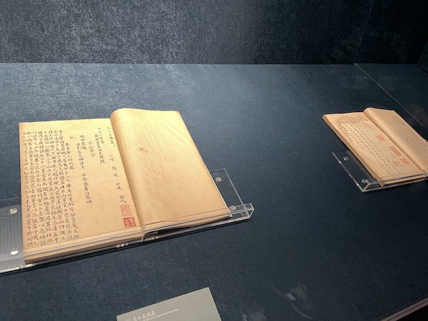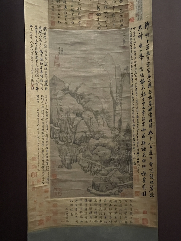 澎湃新闻在现场看到,此次特展汇集苏州博物馆、故宫博物院、中国国家图书馆、南京博物院、上海博物馆、天津博物馆、辽宁省博物馆、浙江省博物馆、安徽博物院等22家境内外博物馆的108件元代藏品及23件明清藏品,并以6件数字藏品再现孤品珍藏。从见证文人雅集的故宫收藏元代赏石“造云石”,到赵孟頫、黄公望、倪瓒、吴镇、王蒙等书画名迹,一片逸韵,清新脱俗,到张成、杨茂之漆作,朱碧山之银槎杯,技法精妙,文人意趣浓厚。