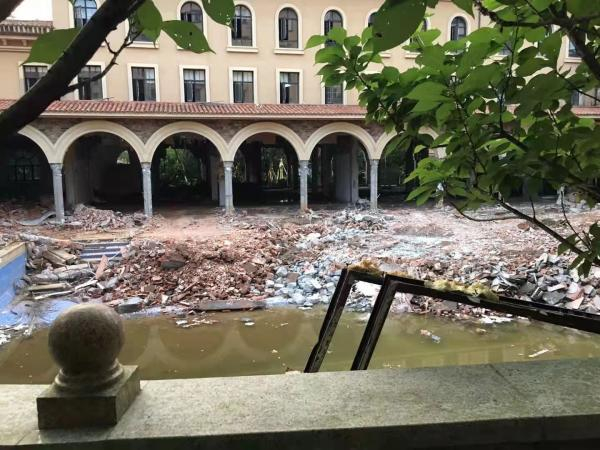 结果是,业主们没等来活动中心,却在2020年年底得知活动中心即将改建成大型足浴会所,“我们作为业主没有得到任何通知,还是其他业主看到了网上公示文件,才发现的。”杨女士说,从2021年年初开始,就已经有施工队开始着手施工改建,不仅占用了原计划用于业主活动中心的建筑,还将建筑外的游泳池也进行填埋,“我们看到的时候游泳池一半都已经满了,都是建筑材料,工人说要把游泳池改成足浴会所的停车场。”