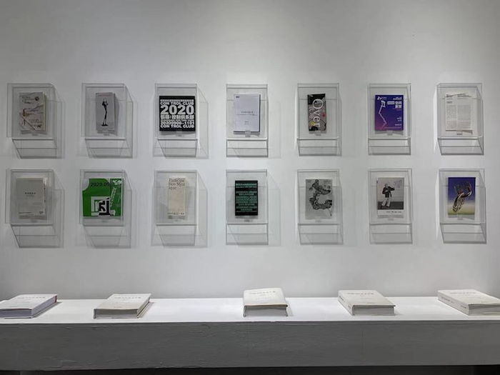 步入美术馆中,《年鉴》与墙上搜集自各家美术馆的展览手册,恍然把人带回了2020。2020年年初疫情来袭,让一切变得不确定,疫情稍缓后,西岸美术馆带来“静默长假”,思考变化和永恒,迷茫与希望;此后2020上海双年展“水体”先在线上开启
