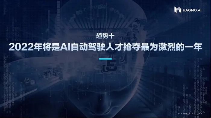 2022年将是AI自动驾驶人才争抢最为激烈的一年。现在汽车行业70%的科技创新都来自于自动驾驶技术领域,欧美中日在这一领域都在持续大规模投资。大规模投资的背后就是AI自动驾驶人才的争抢,我国在汽车智能化领域已经走在全球前列,中国消费者对自动驾驶、对智能汽车的接受程度与期待程度明显高于欧美发达国家,可见2022年中国会成为AI自动驾驶人才争抢最为激烈的区域。