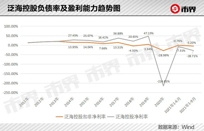 除此之外,泛海控股境外附属公司在2021年8月底和10月底,分别出现两笔债券违约,相关本金分别为3.44亿美元和26亿元。