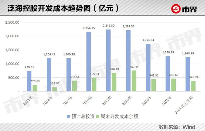 2019年泛海系便开始了大规模抛售,开发项目预计总投资到2021年上半年已降至1240.98亿元。