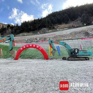 12月26日上午,四川省阿坝州小金县达维镇,随着一声鸣笛,两台挖掘机开动,国道351夹金山隧道正式开工。