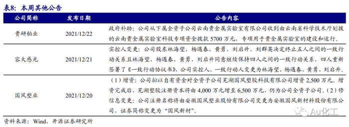 重要公司公告及行业资讯