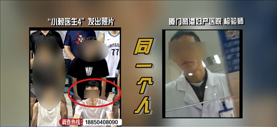 “小赖医生4”的朋友圈中发布了不少胎儿性别鉴定的广告和内容,包括血样送达境外的画面。为了招揽生意,他还晒出了自己的工作环境,声称其是在厦门一家正规医院上班。在其中的一段视频中,记者发现了一面出镜墙体与厦门一家妇产医院的照片十分类似。