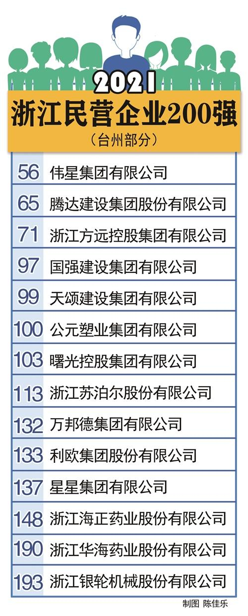 民企前200强,台州有14家企业榜上有名。而在“2021年浙江民营企业研发投入100强”中,台州民营企业的表现也挺亮眼,有11家企业上榜,数量居全省第四,其中4家进入前50强。