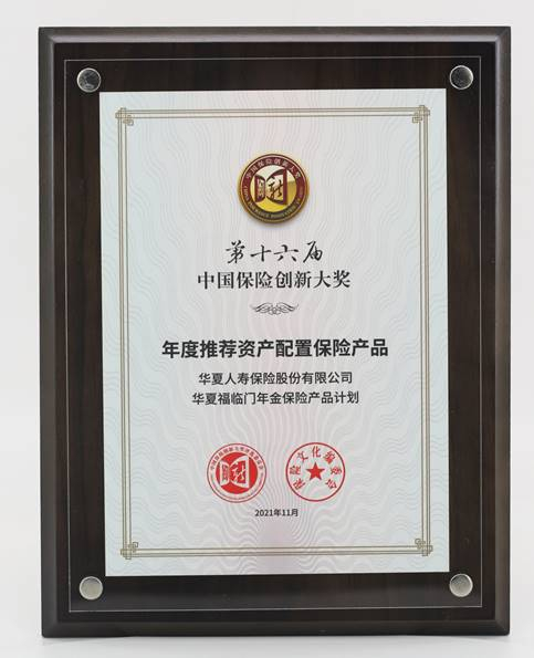华夏福临门系列年金险上市距今已有十年,深受市场和客户的青睐与认可,堪称年金险界的“常青树”。截至2020年11月,华夏福临门系列年金险累积服务客户超过390万人,总保费达2700亿元,年金险客户领取生存金116.2亿元,保单借款125亿元。2021年1月,华夏福临门年金险产品计划被保险行业专业媒体《今日保》评选为“年度十大畅销保险产品”。