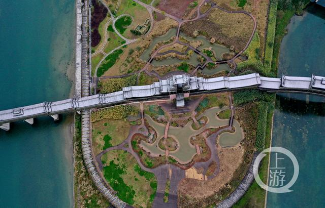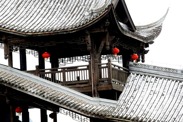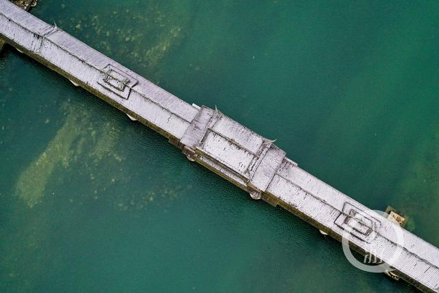 风雨廊桥像一条白色巨龙横卧江面。