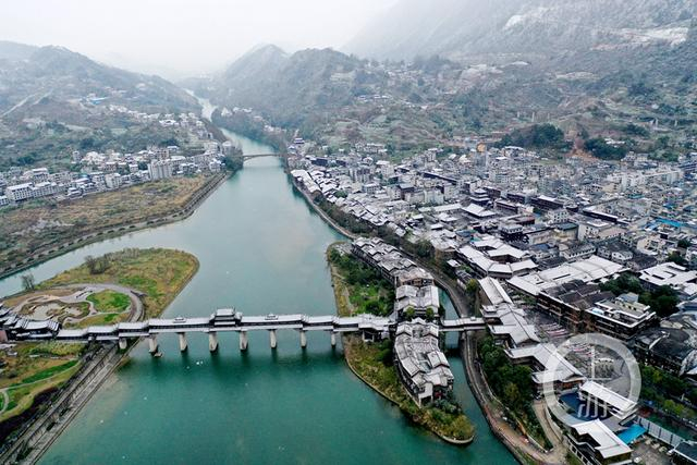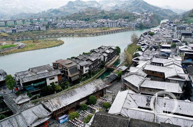 原标题:重庆黔江:雪映古镇景如画
