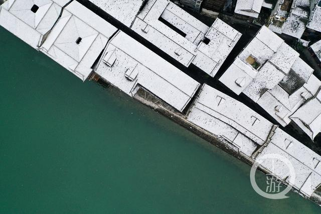 白雪、碧水,今天的濯水古镇美极了。