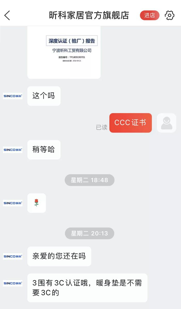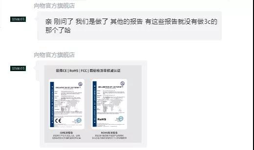 但是,我们还是发现,有3款产品是没有3C认证的,我们问了客服,他们的回答是这样的: