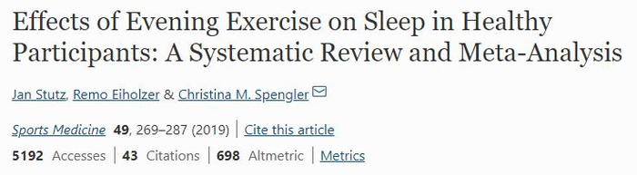 [1]Effects of Evening Exercise on Sleep in Healthy Participants: A Systematic Review and Meta-Analysis.DOI:10.1007/s40279-018-1015-0