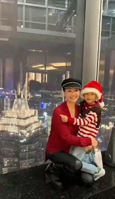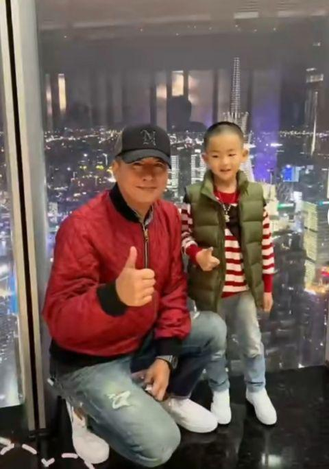 他们5岁的儿子长得非常可爱,颜值似乎更像爸爸一些。他与父亲在宽大的落地窗前一同合照,父子俩表情同步。