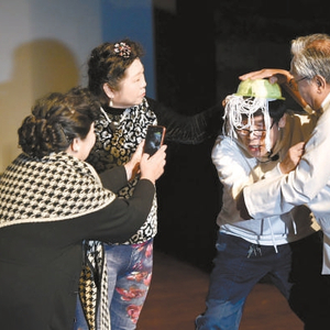 刘阿姨也是退休后才开始接触并学习话剧表演的,没想到玩着玩着越搞越大。2016年,她以社区为依托成立了北京心语话剧团,义务为大家演出。